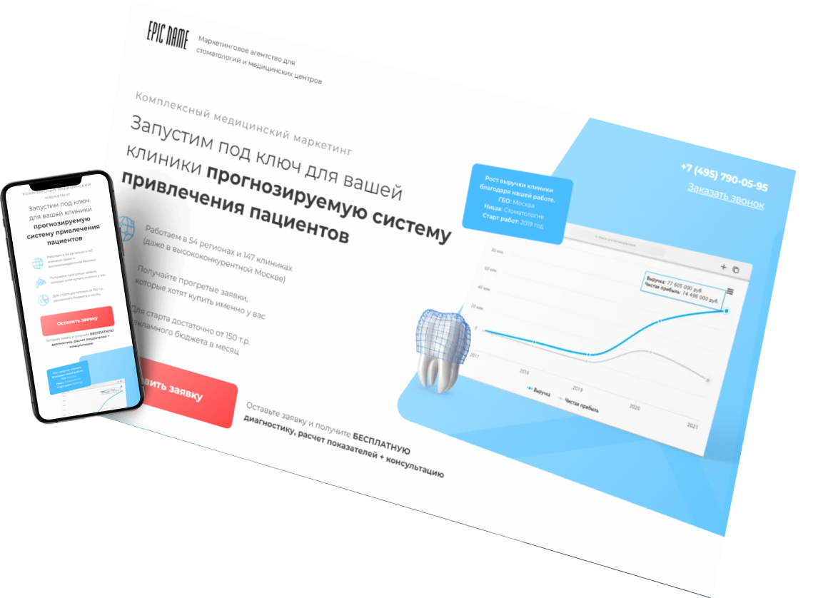 Одностраничный сайт, содержащий в себе всю необходимую базовую коммерческую информацию и подталкивающий пользователя к совершению целевого действия Подходит для платного трафика (реклама в Яндекс Директ и во ВКонтакте)